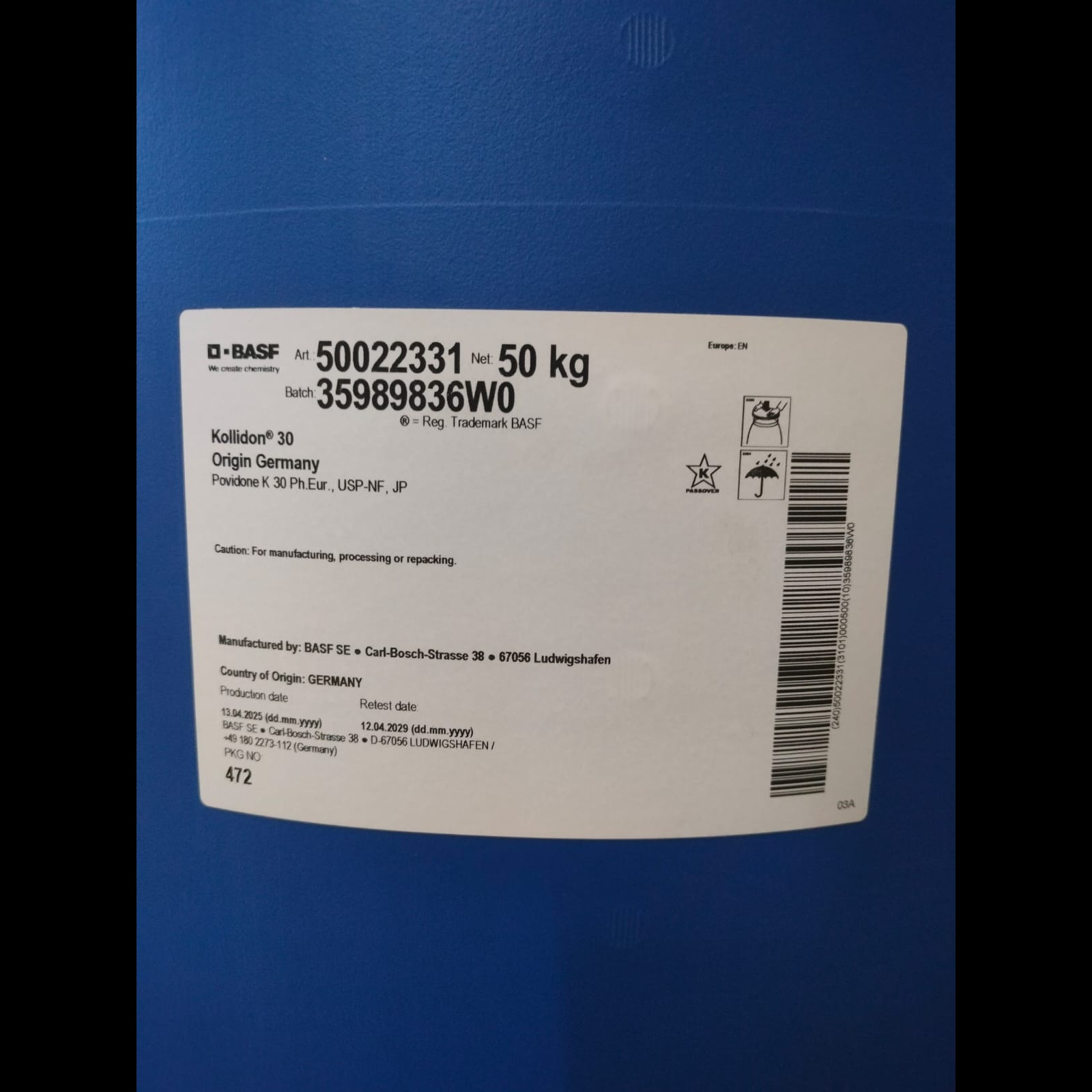 Kollidon 30 LP is supplied in the form of an almost white free-flowing powder. It has a slightly characteristic odor and is practically tasteless. Because of its solubility in water and in many organic solvents, its high binding power and ability to form complexes, soluble polyvinylpyrrolidone (Kollidon 30 LP ) occupies a special position among the synthetic colloids. Kollidon 30 LP is particularly suitable for oxygen sensitive APIs-opening the door for new applications. It is considered the orignal PVP from the industry’s most experienced team. Kollidon 30 LP is available in BASF’s very own cutting edge PeroXeal packaging concept for even greater stability. It also has built in peroxide protection limits peroxides even after the packaging is opened